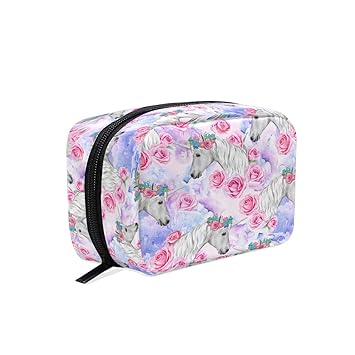 Amazon Com Unicorn Flower Cosmetic Bag Makeup Case Pink Roses