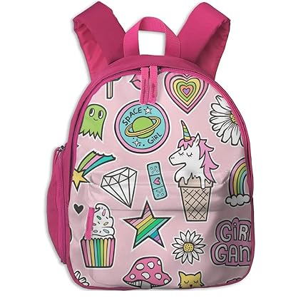 Childrens Backpack For Girls Patches Stickers 90 S Doodle Unicorn
