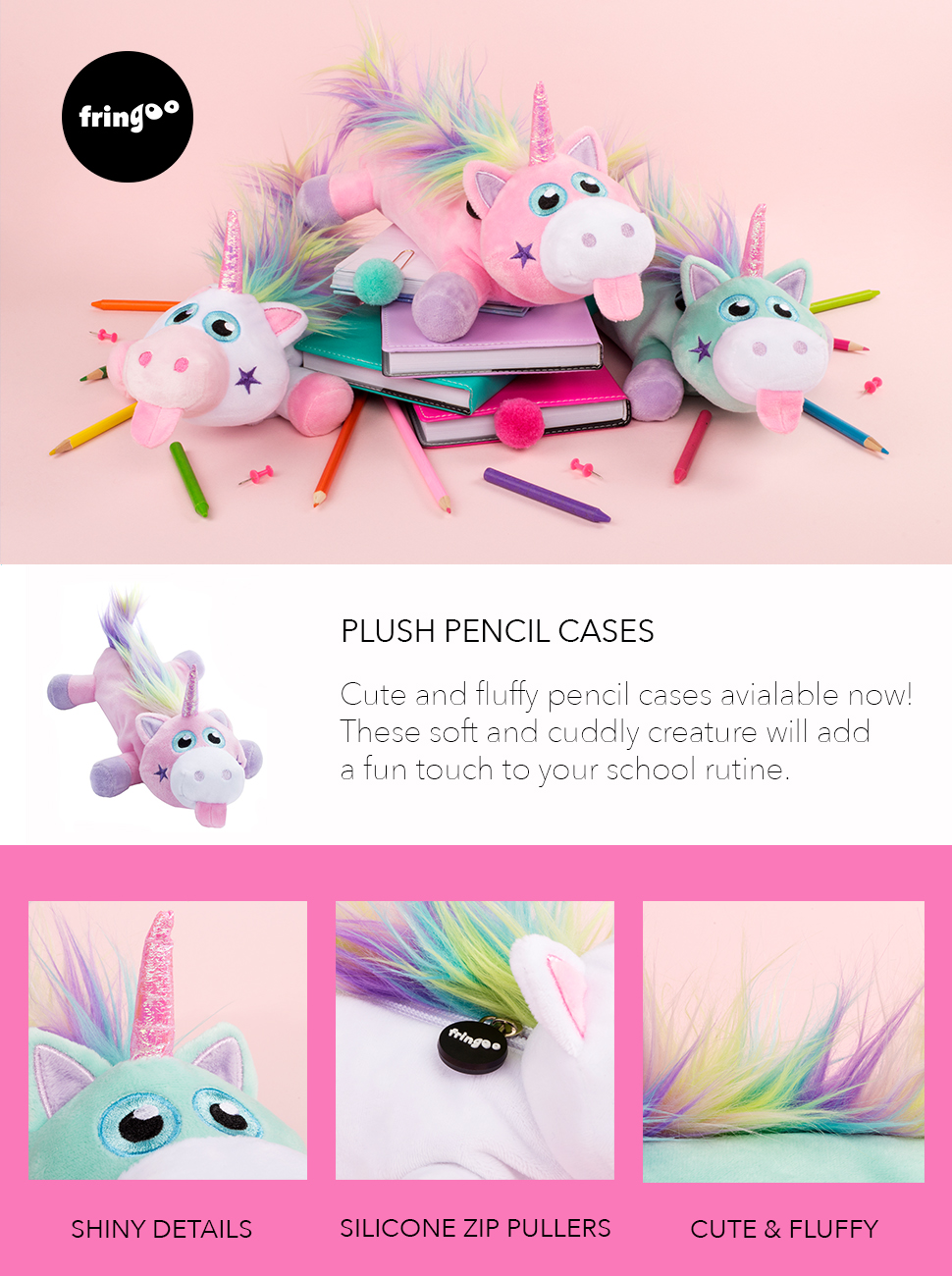 Fringoo Plush Unicorn Pencil Case For Girls Soft Large Capacity
