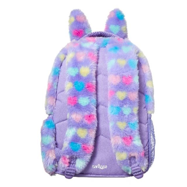 New Girls Smiggle Fluffy Rabbit Hop Pink Hearts Backpack Rainbow