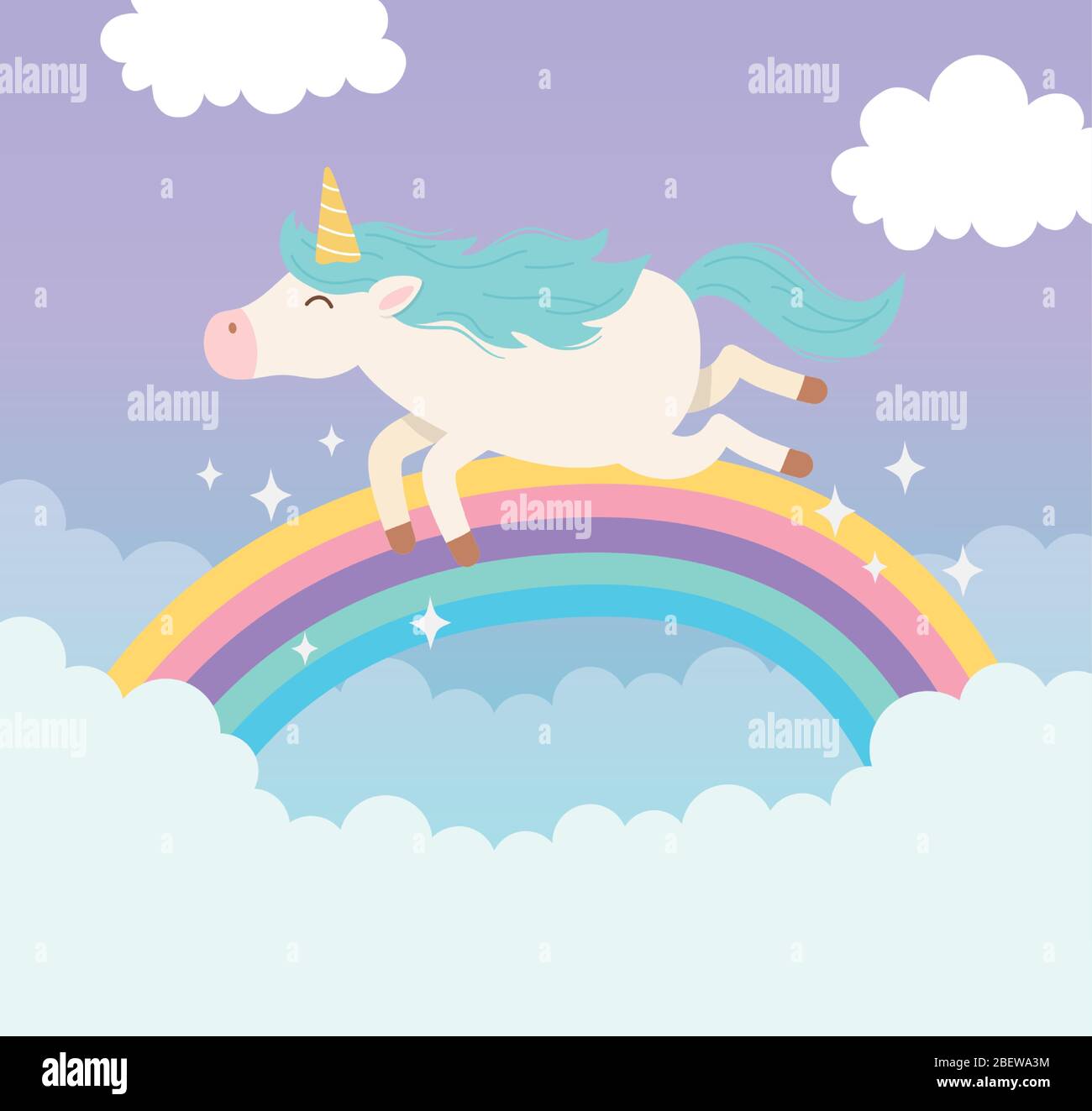 Unicorn Flying Rainbow Clouds Magical Fantasy Cartoon Cute Animal