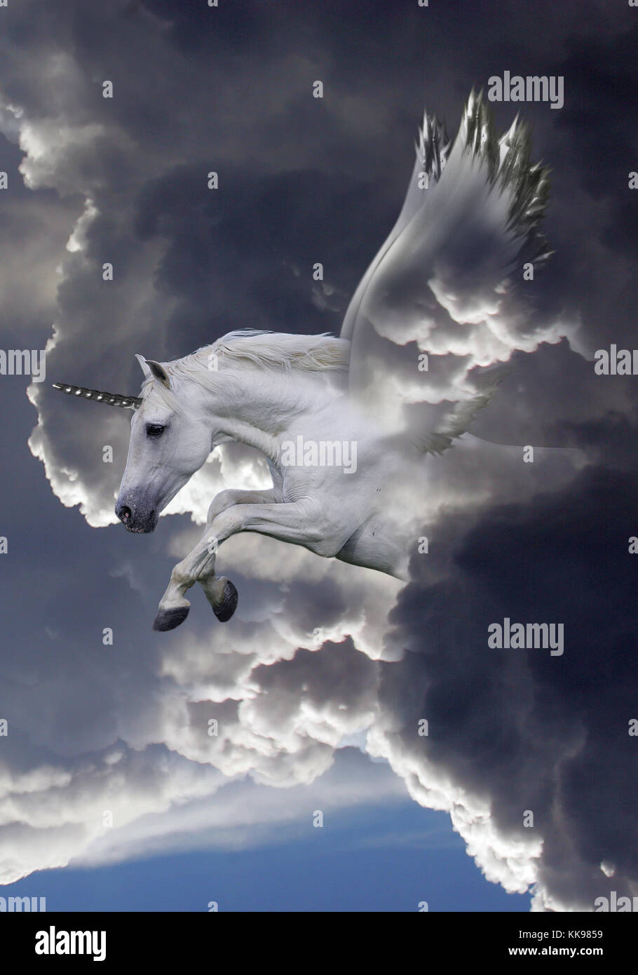 White Unicorn Flying In The Sky Stock Photo Picture And Royalty