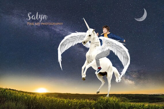 Magical Flying Unicorn Night Fairy Scene Digital Backdrop Etsy