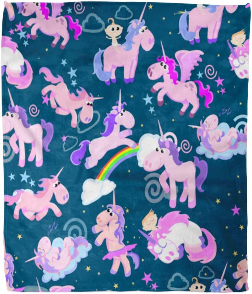 Amazon Com Tinmun 50 X 60 Cozy Plush Throw Blanket Cute Unicorn