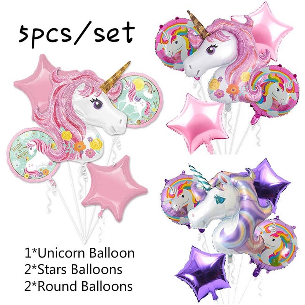 5pcs Set Unicorn Birthday Balloons 18 Inch Star Round Foil Balloon