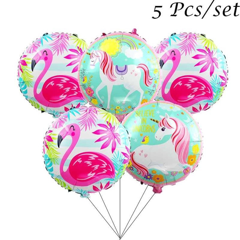 5 Pcs Set Round Unicorn Balloons Foil Helium Balloon Flamingo