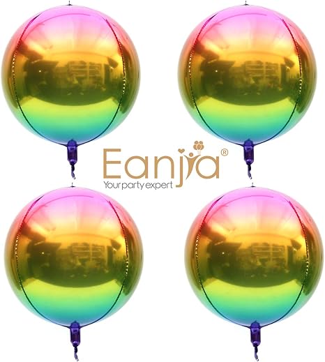 Eanjia Rainbow Ombre Balloons 4pcs Hangable 4d Foil Balloon Round