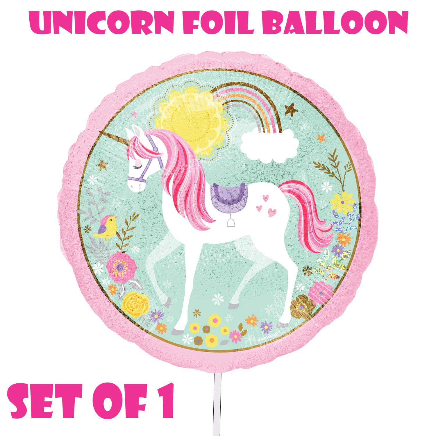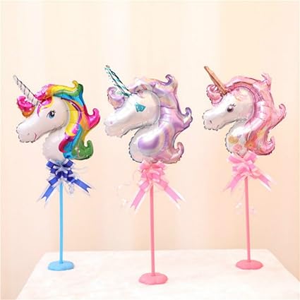 Amazon Com 3 Pack Unicorn Foil Balloons With Round Base Balloon