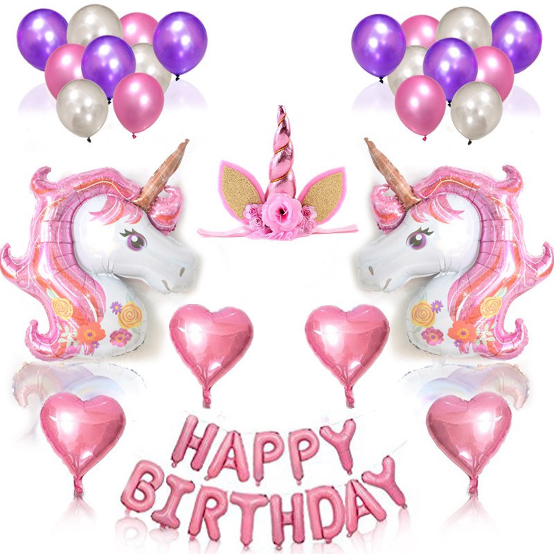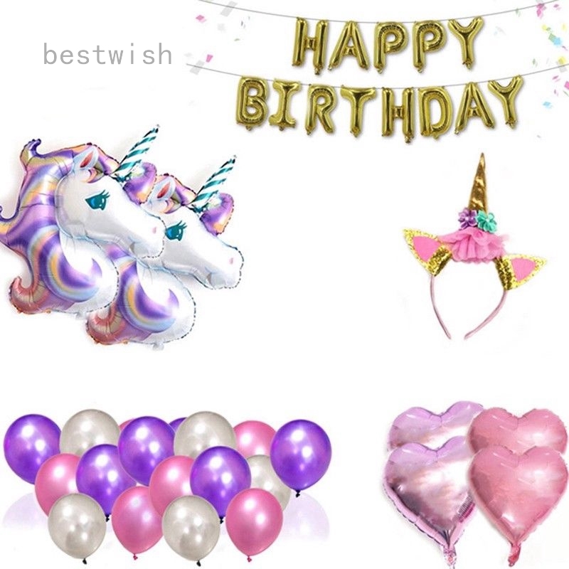 Unicorn Foil Balloons Set Birthday Party Decor Happy Birthday