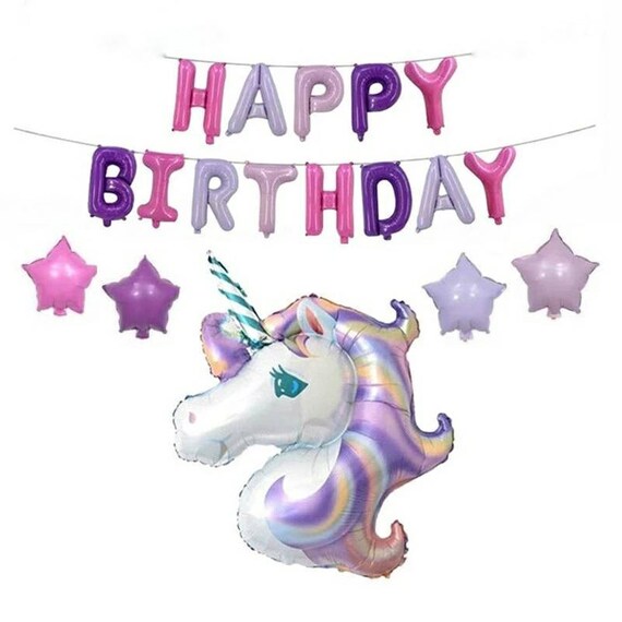 18 Piece Happy Birthday Unicorn Foil Balloon Set Etsy