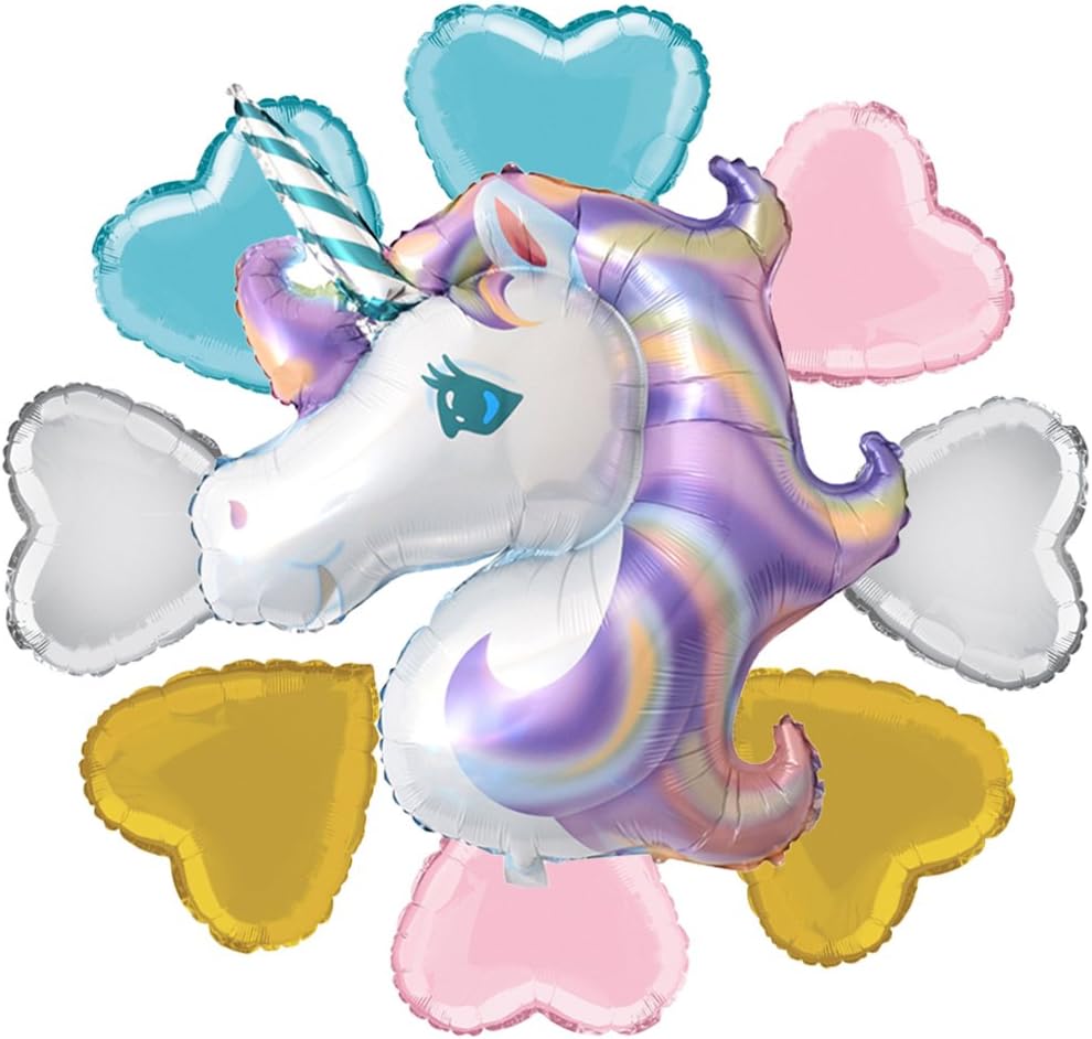 Amazon Com Unicorn Party Balloon Set Of 9 Foil Balloons 18 Heart