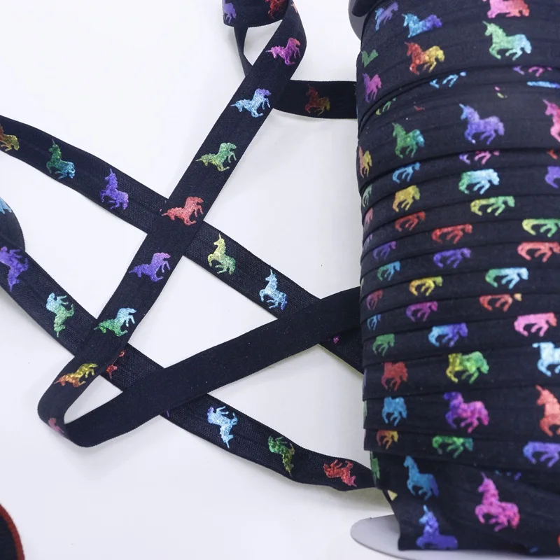 2020 50 Yards Good Quality 5 Ful Unicorn Print Fold Over Elastic