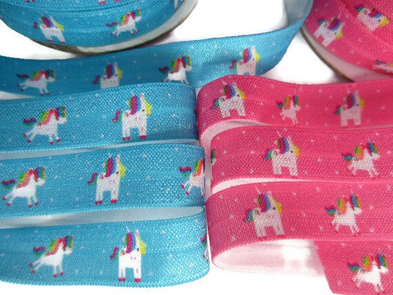 Unicorn Fold Over Elastic Rainbow Foe Pink Or Blue Fold Etsy