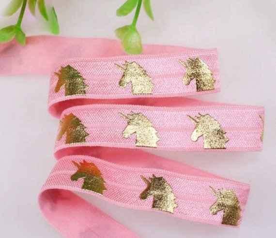 Amazon Com Midi Ribbon Gold Unicorn Print Fold Over Elastic 5 8