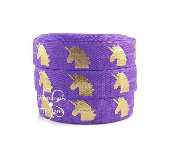 Gold Unicorn Head Foe Purple Fold Over Elastic 5 8 Etsy