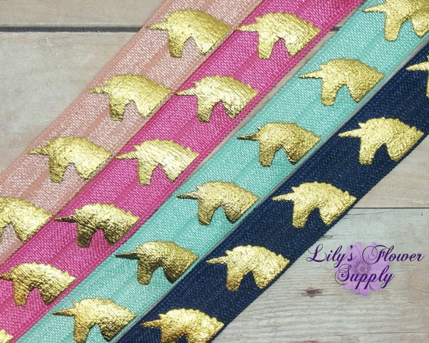 Gold Foil Unicorn Fold Over Elastic Ribbon 5 8 Diy Metallic