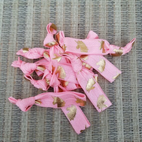 10 Unicorn Bulk Hair Ties Unicorn Print Fold Over Elastic Etsy