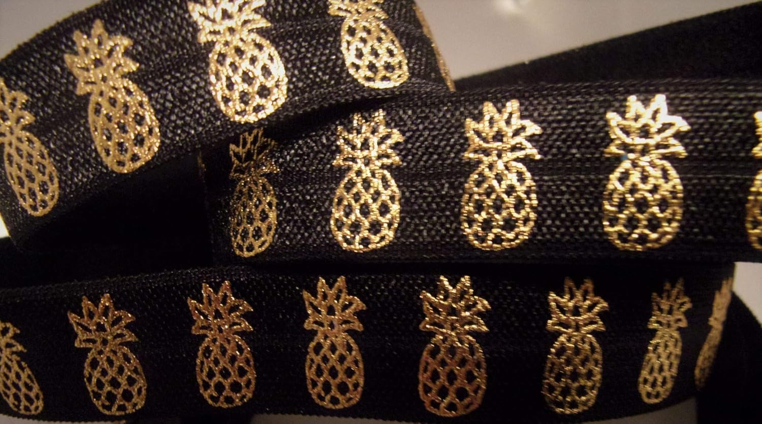 Amazon Com Fold Over Elastic Gold Foil Pineapple Print On Black