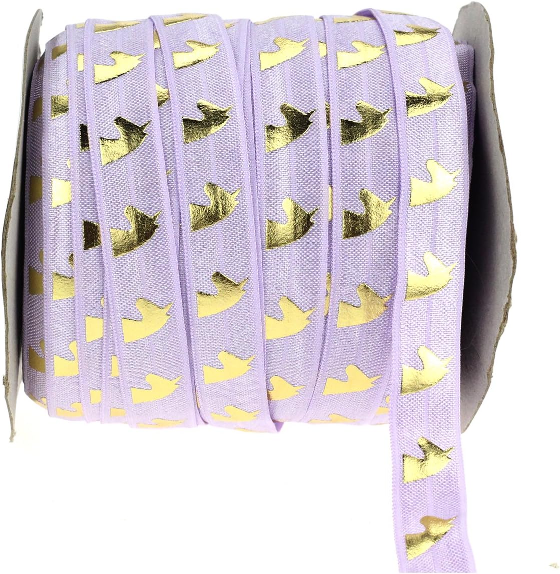 100yards5 8 Gold Foil Unicorn Foe Fold Over Elastic Shiny For
