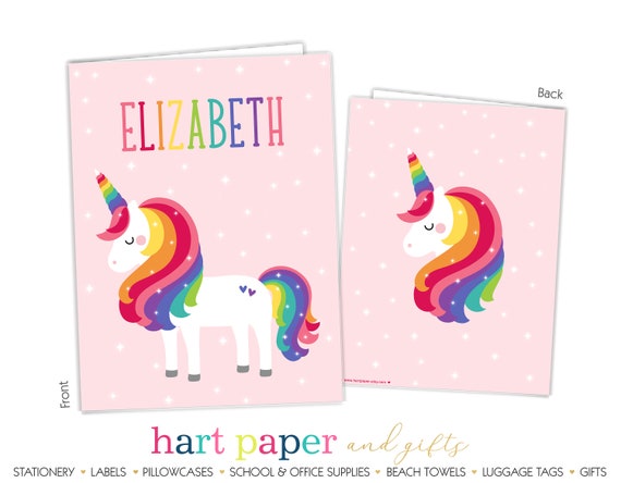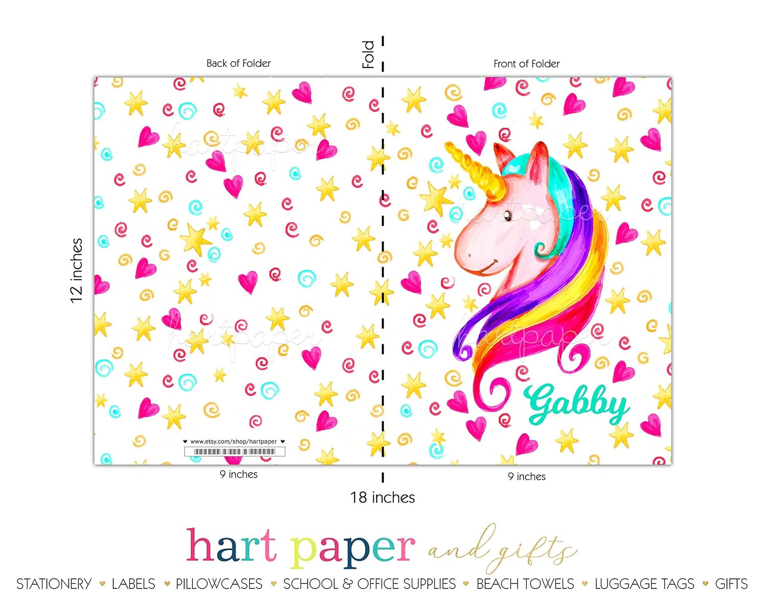Rainbow Unicorn 2 Pocket Folder Gift Name Back To School Supplies