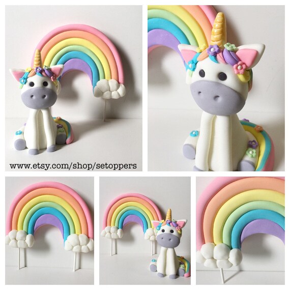 Unicorn Party Unicorn Cake Topper Rainbow Fondant Cake Etsy