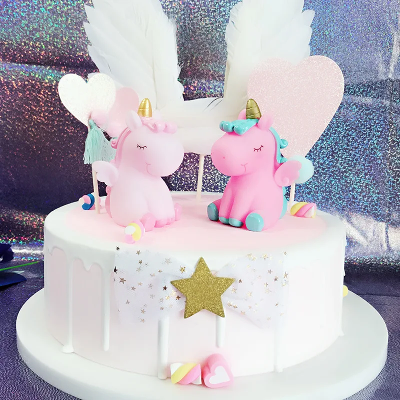 Pink Blue Unicorn Birthday Cake Baking Resin Decoration Girls