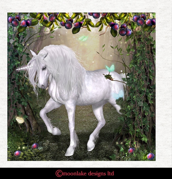 Unicorn Forest Fruit Unicorn Fantasy Art Fabric Fabric Etsy