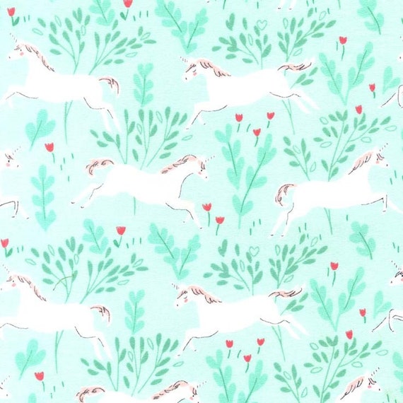 Unicorn Forest In Aqua Cotton Fabric By Michael Miller 1 Etsy