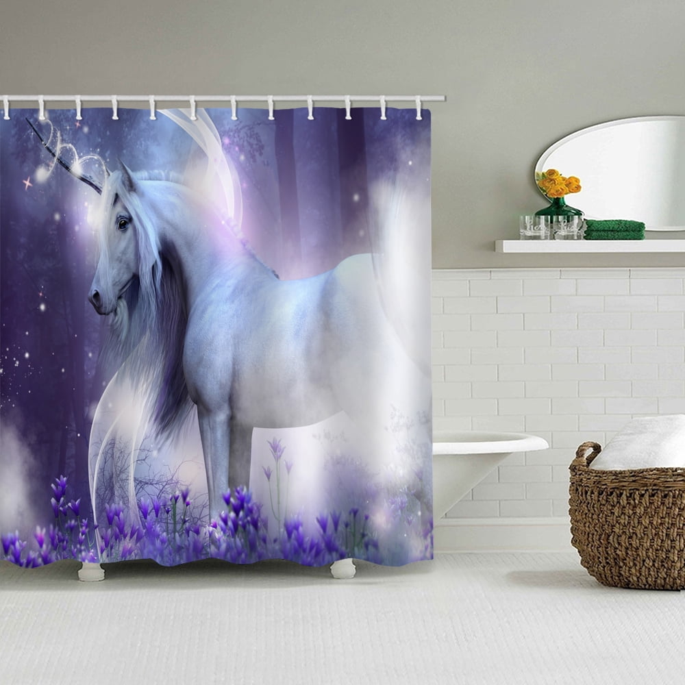 Unicorn Fabric Shower Curtain White Pegasus Purple Tulip Forest