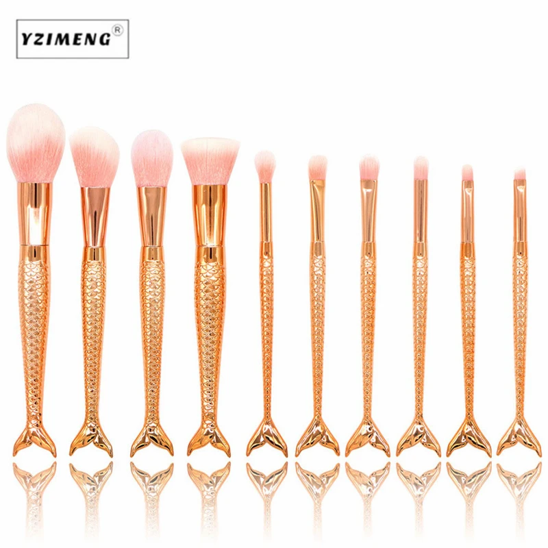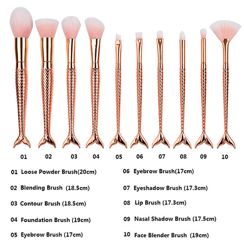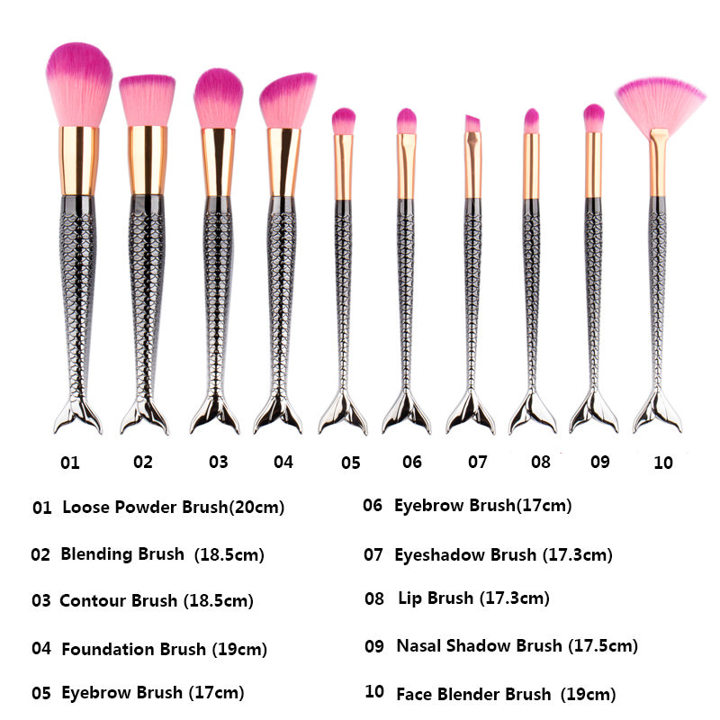 10 Pcs Unicorn Mermaid Makeup Brush Set Fish Tail Foundation