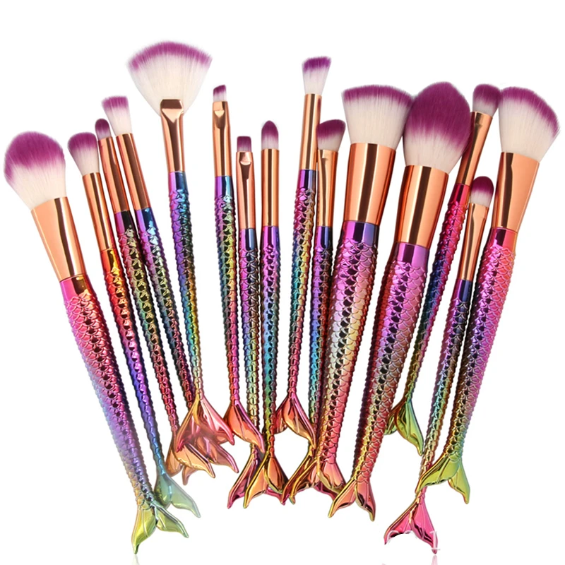 Professional 15pcs Multicolor Mermaid Rainbow Makeup Brushes