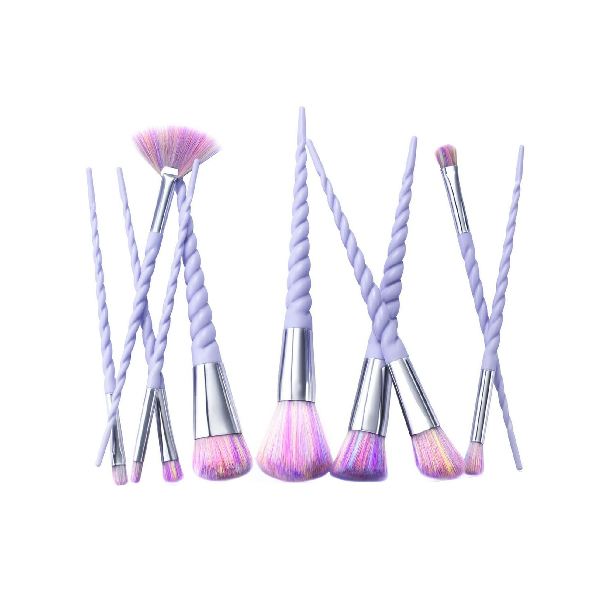 Zodaca 10 Pcs Makeup Brush Set Purple Spiral Handle Unicorn Makeup