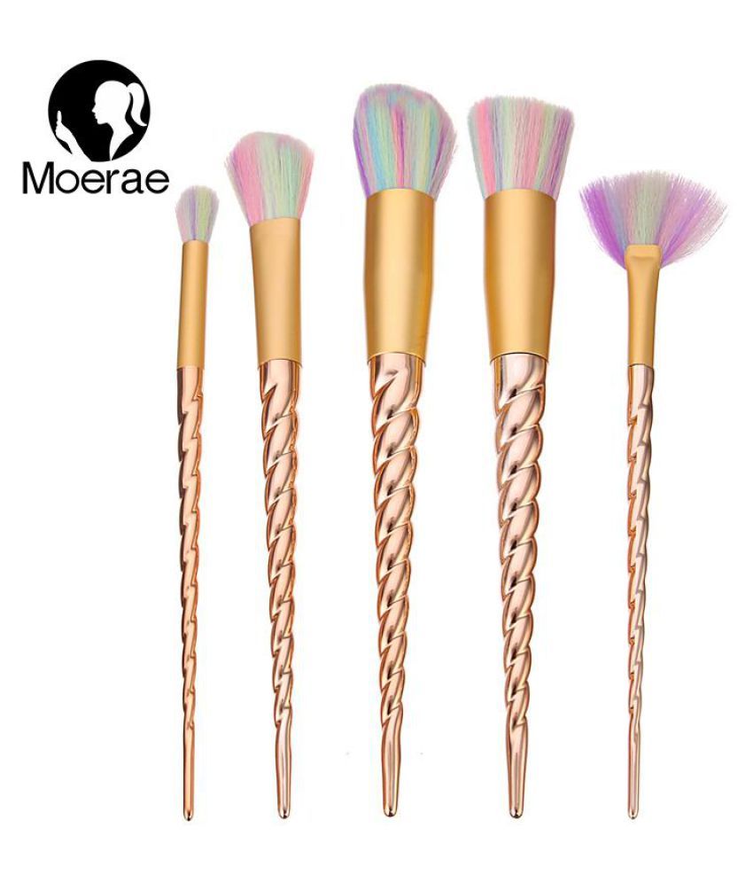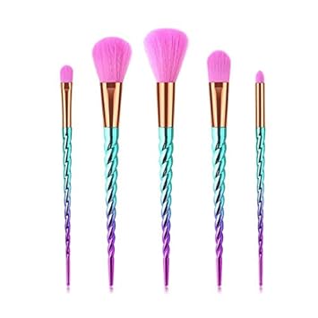 Unicorn 5pcs Set Professional Makeup Brushes Set Rainbow Hair