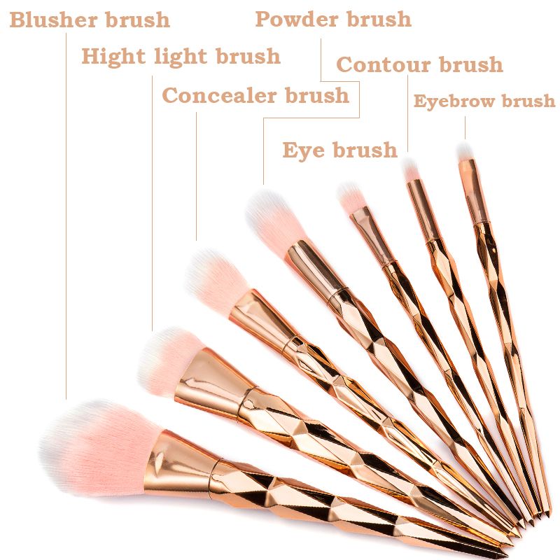 7pcs Twist Pink Diamond Makeup Brush Sets Unicorn Foundation Eye