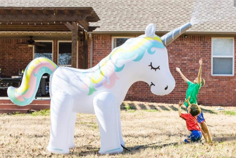 This Six Foot Tall Inflatable Unicorn Sprinkler Will Make This