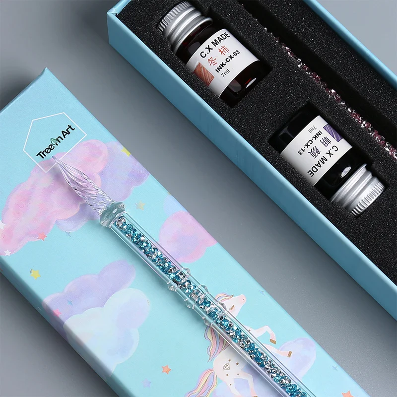 New Glass Fountain Pen Unicorn Ink Set Crystal Pen Transparent Dip