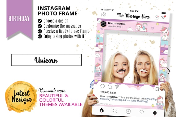 Unicorn Party Props Instagram Frame Photo Booth Instagram Frame