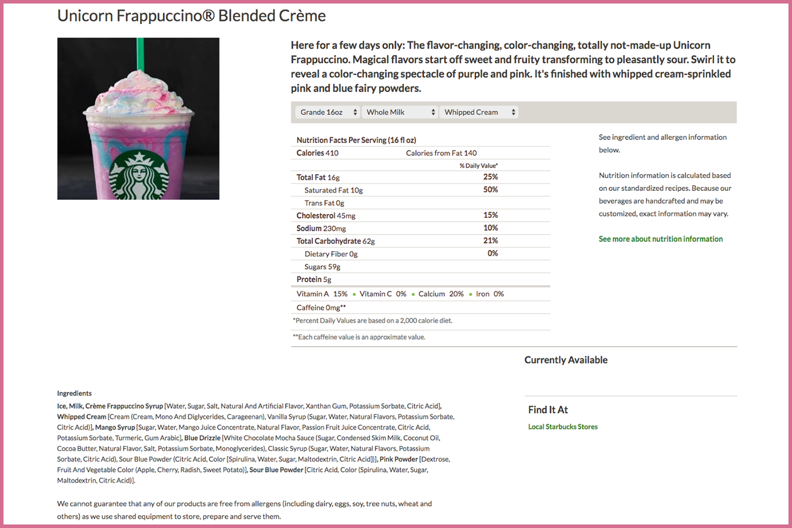 Verify Does Starbucks Unicorn Frappuccino Really Have More Sugar