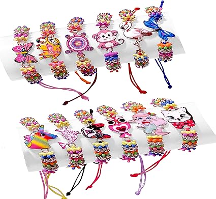 Dzy 12pcs Kids Girls Animal Beaded Woven Friendship Bracelet
