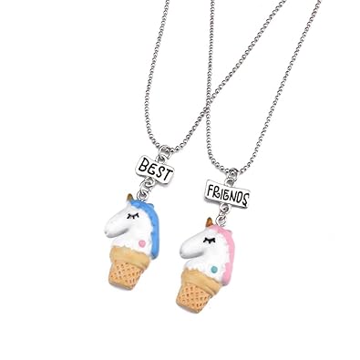 2 Pcs Set Best Friends Forever Unicorn Ice Cream Pendant Necklace