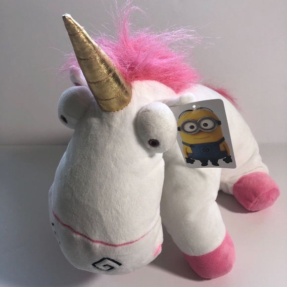 Despicable me 2 plush unicorn. Doll measures about 15 long by 12 tall. Kids can play with agnes fluffy unicorn based on the movie despicable me 2.