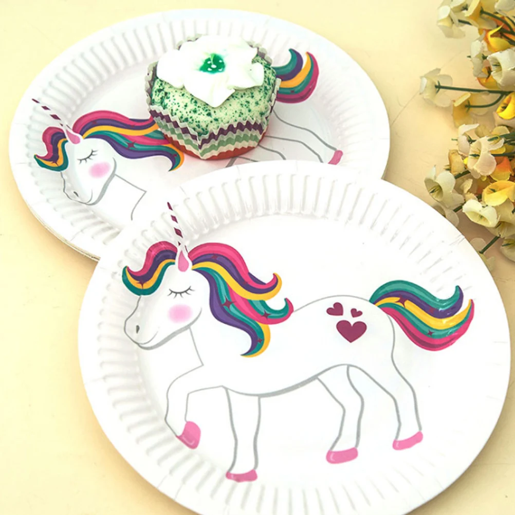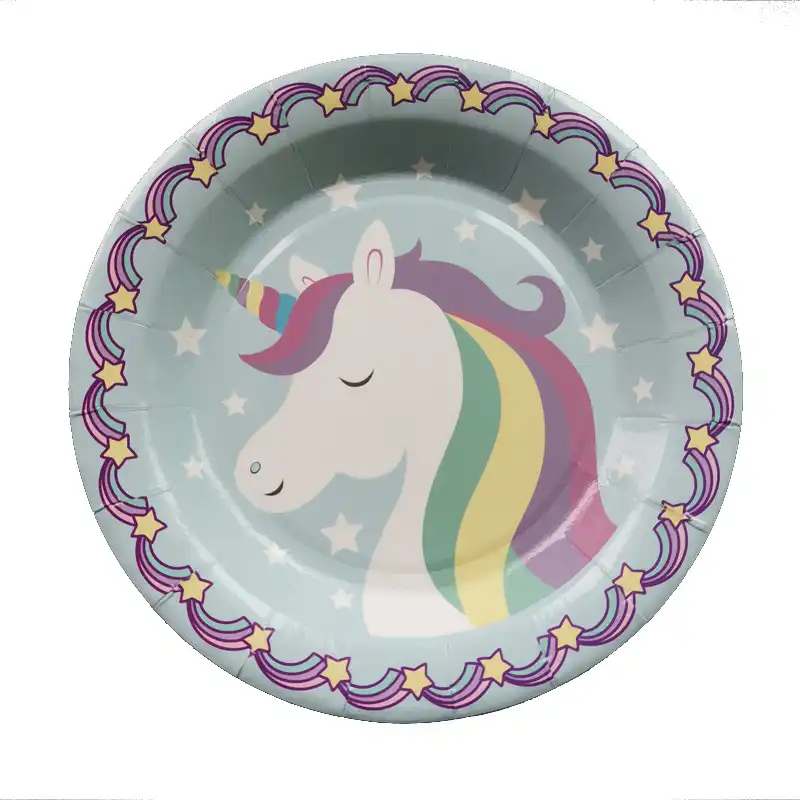 10pcs 7 Inch Paper Unicorn Cake Display Stand Dessert Plate Dried