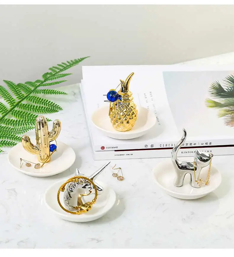 Gold Silver Ceramic Pineapple Unicorn Cactus Cat Jewelry Trinket