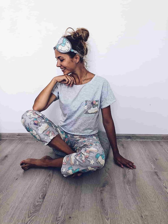 Pajamas Unicorn Print Gift For Women Girl Teen Good Silk Etsy