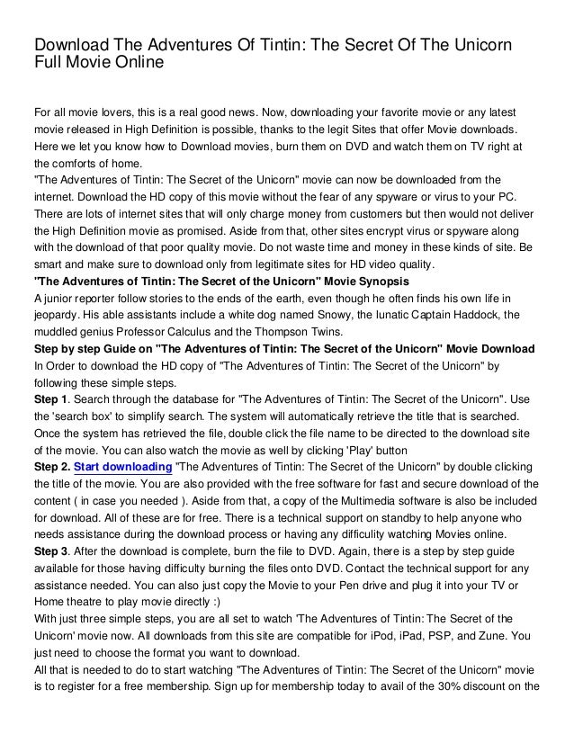 The Adventures Of Tintin Full Movie The Secret Of The Unicorn