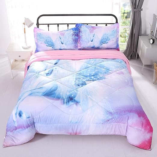 Howplumb Unicorn Girls Bedding Full Queen 4 Piece Comforter Bed