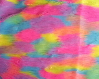 Faux Fur Fabric Long Pile Neon Rainbow 60 Wide Sold By The