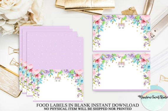 Unicorn Food Labels Unicorn Food Tent Blank Labelunicorn Etsy
