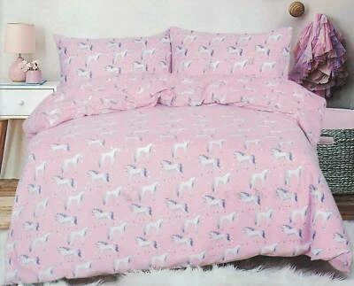 Kids House Flannelette Quilt Cover Set Pink Unicorns Stars