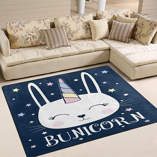 Amazon Com Area Rug 80x58 Inch Funny Unicorn Bunny Rabbit Star